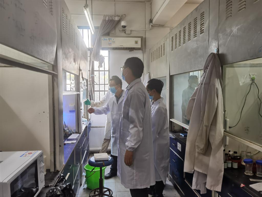 疫情复工复学以来,公司一直致力于加强公司实验室安全管理,强化研究生的实验安全意识,推进实验室安全工作扎实、有效地开展。2020年9月4日,新学期伊始,公司开展了一次安全大检查。本次检查工作由公司安全管理委员会组织,书记李涛、经理朱锦涛带队,党委副书记吴疆鄂、副经理朱启军、龚跃法及部分安全管理委员会老师共同参与。