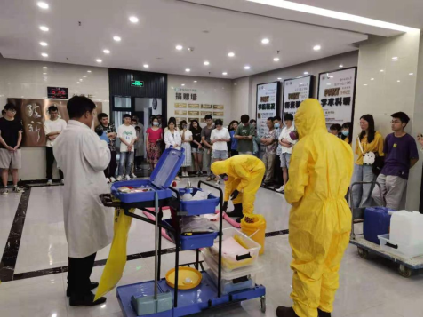 为进一步强化全院师生的安全意识,提高师生应急救灾的实战技能,防患于未然。2021年6月24日下午14:30公司联合校保卫处、赛弗安全文化等部门在化学楼组织开展了“化学废弃物泄漏应急演练暨消防演习”活动,化学楼和韵苑28栋的一百多名师生参加了本次演练活动。保卫处治安与消防管理科科长毛天音、副科长郑明皞、伟德国际VICTOR1946副经理朱启军、以及赛弗丁睿总经理参与指导本次活动。
