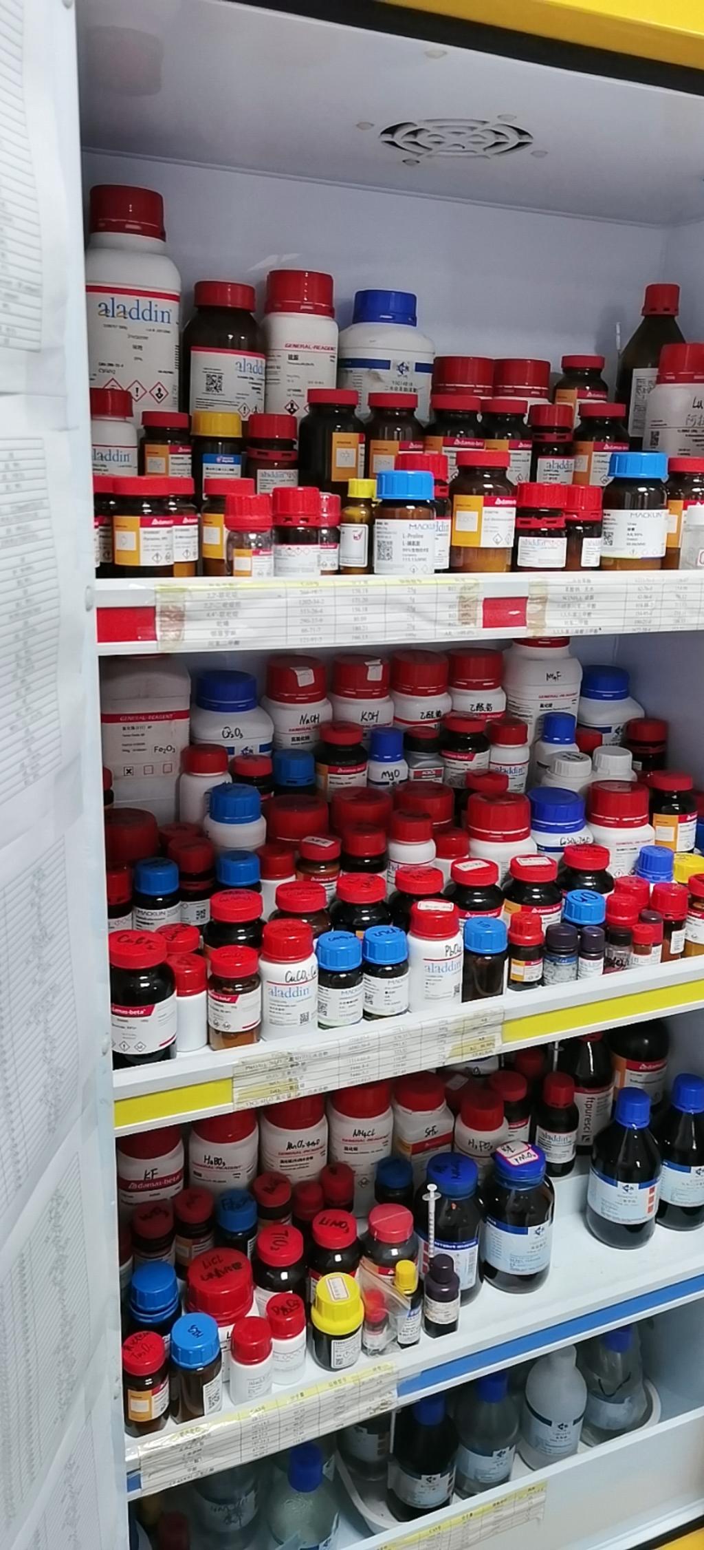 发现普遍存在以下问题: 1、管制类试剂未落实双人双锁,台账记录不全; 2、实验台柜下面的普通试剂无清单或账物不符; 3、试剂存放不规范,存在叠放混放现象; 4、长期不用陈旧试剂未及时报废; 5、自制试剂无标签或标签不规范; 6、自制试剂存放处无标识; 7、通风橱使用不规范,里面存放大量物品挡住柜门下拉; 8、加热烘箱内放试剂等易燃物; 9、实验室整洁卫生度较差。 安委会要求各课题组对照以上问题进行自查,认真落实整改。