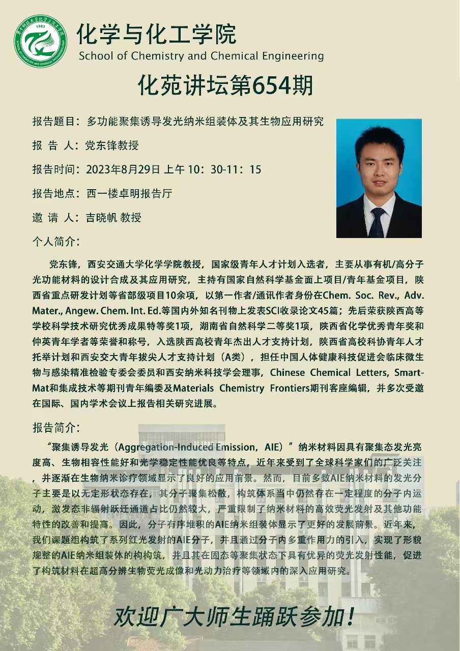 西安交通大学党东锋教授做客第654期化苑讲坛