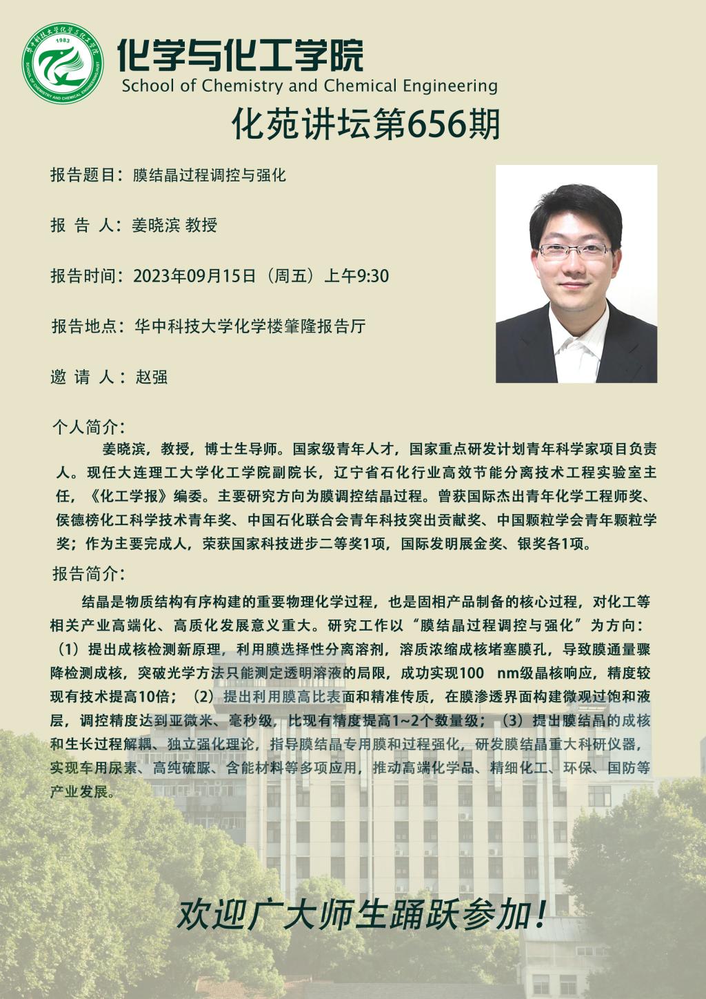 大连理工大学姜晓滨教授做客第656期化苑讲坛