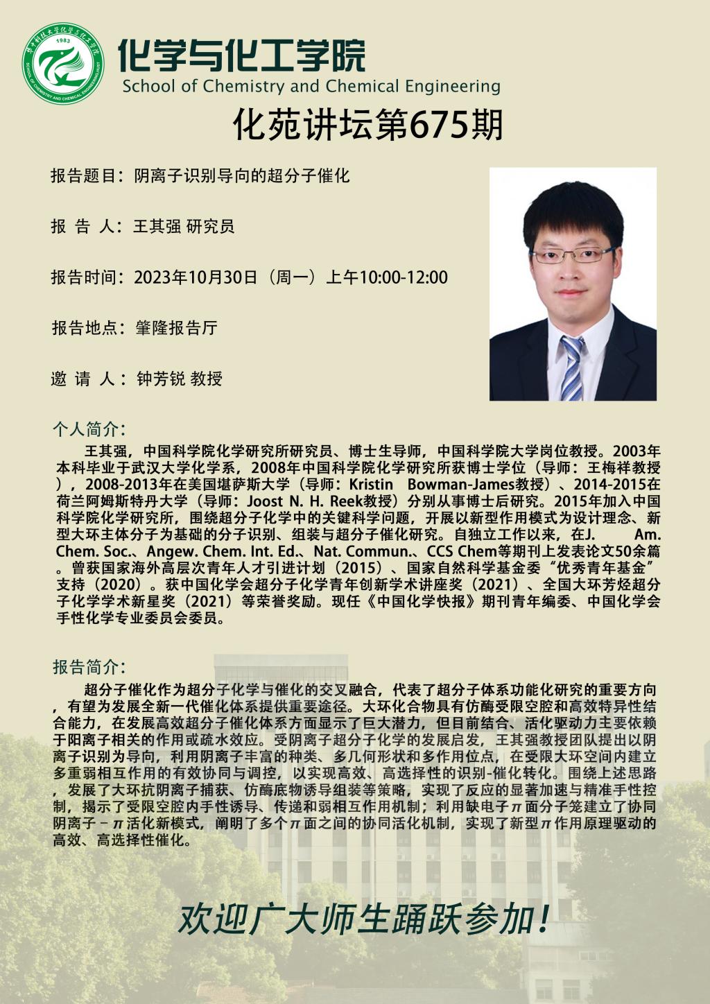 中国科公司大学王其强研究员做客第675期化苑讲坛