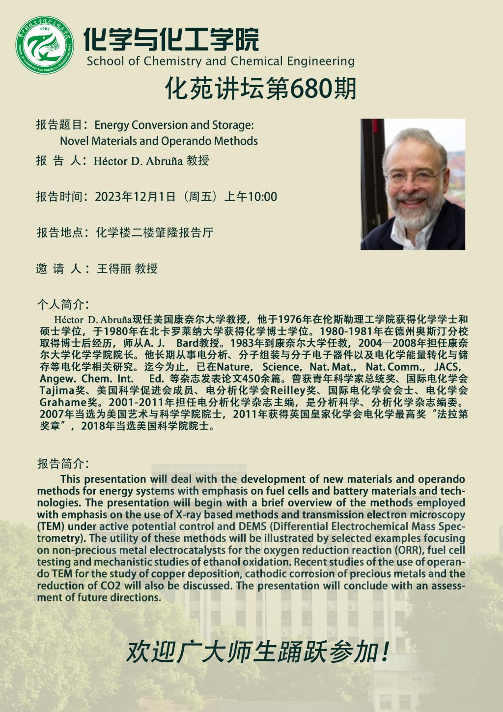 美国康奈尔大学Héctor D. Abruña教授做客第680期化苑讲坛