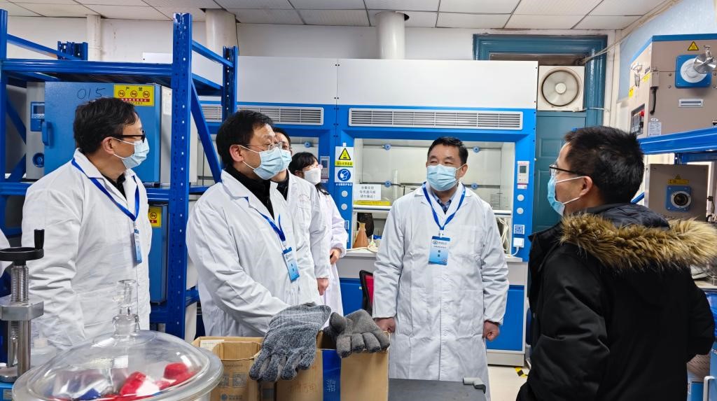 2023年2月16日上午公司党委副书记马建辉,实设处处长李震彪、副处长毛勇杰等领导来公司检查实验室安全工作。副经理朱启军和公司安全员接待并介绍公司实验室安全工作情况。