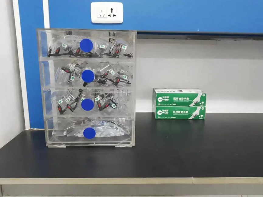 图六 自查自纠后的护目镜和实验手套的摆放