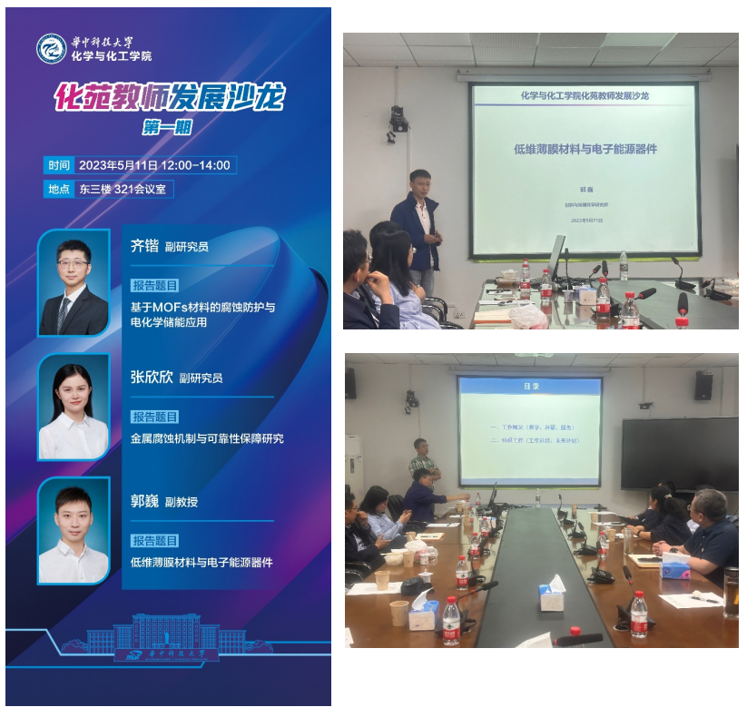 2023年5月11日,化苑青年教师发展沙龙第一期成功举办。青年教师郭巍副教授、齐凯副研究员进行工作汇报,公司党委书记江洪洋,经理谭必恩,副经理龚跃法、顾彦龙和部分教师参会,沙龙由院工会主席高中洪主持。