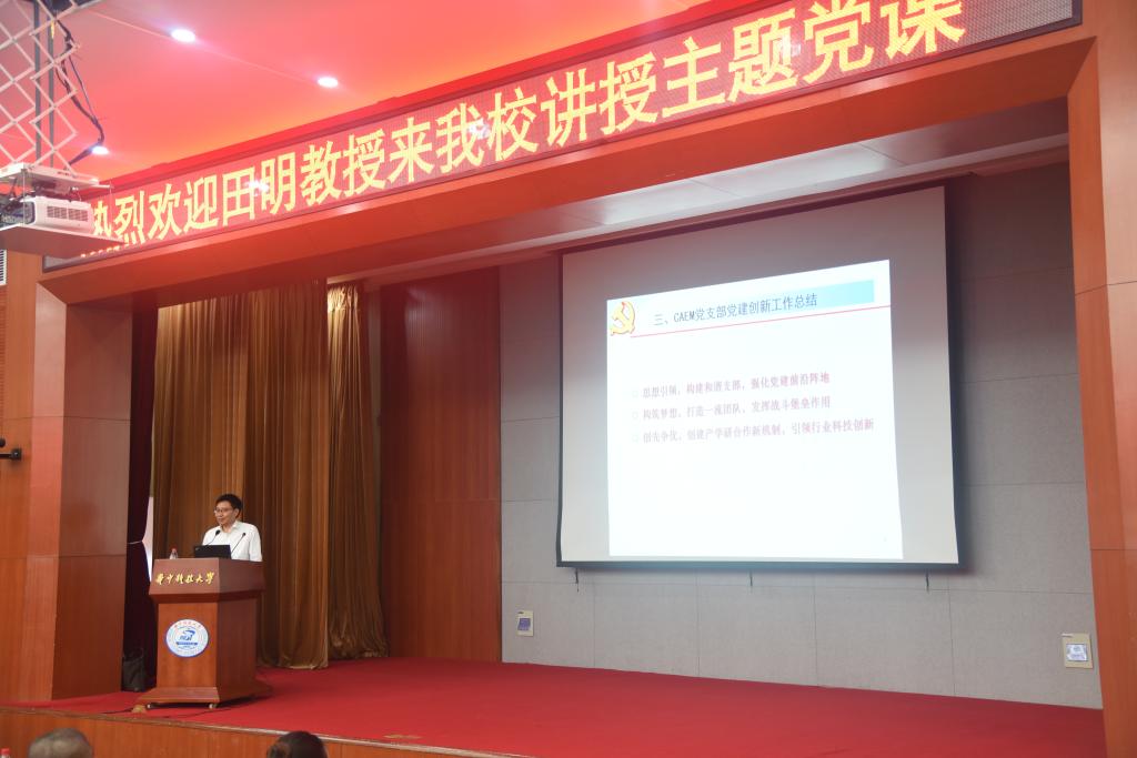 田明教授以自己带领的CAEM党支部为例,为大家分析新形势下高公司党支部建设面临的新问题,总结了CAEM党支部党建工作成果和创新情况,并由此对高公司党支部建设和基金工作有了思考和体会。他首先简单介绍了不简单的CAEM党支部,党支部以模范做到“五个好”为目标,以争创佳绩“五带头”为追求,坚持党的建设工作与研究中心教学、科研、育人工作协调发展;坚持激发每一位党员的生机与活力,充分发挥党支部的创造力、凝聚力和战斗力,因此在科学研究、教书育人、创建和谐校园等方面取得了丰硕成果。
