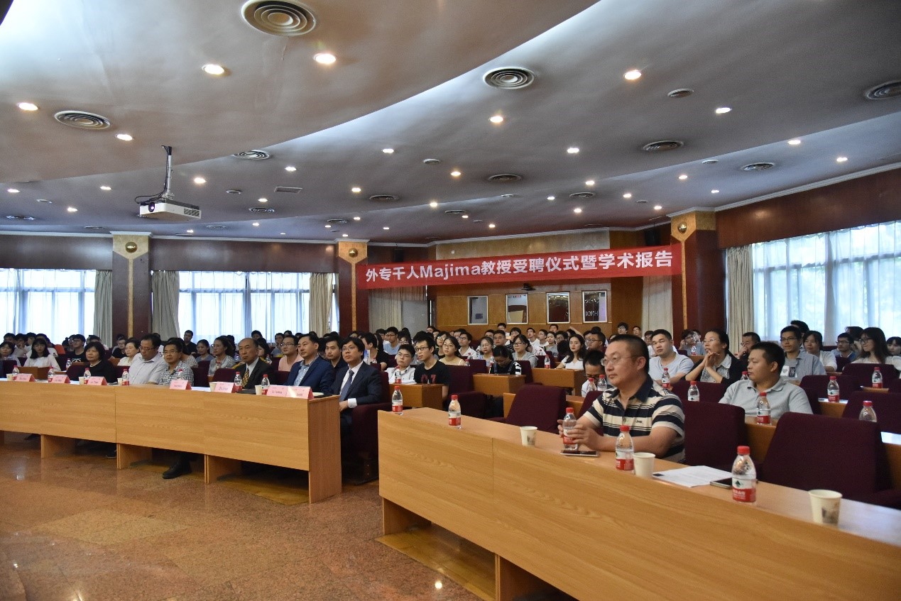 授聘仪式结束后,Tetsuro Majima教授现场做了一场题为《Challenge of Creating New Research》的报告,通过讲解如何开展有创造力的研究和如何科学有效的写论文两个方面的内容,Tetsuro Majima教授幽默风趣的引出开展新研究所面临的挑战,最后也寄语在场的员工,希望大家能及时找到自己在人生中想做的和应该做的事情并为之努力。讲座结束后,Tetsuro Majima教授与现场师生提问互动并合影留恋。