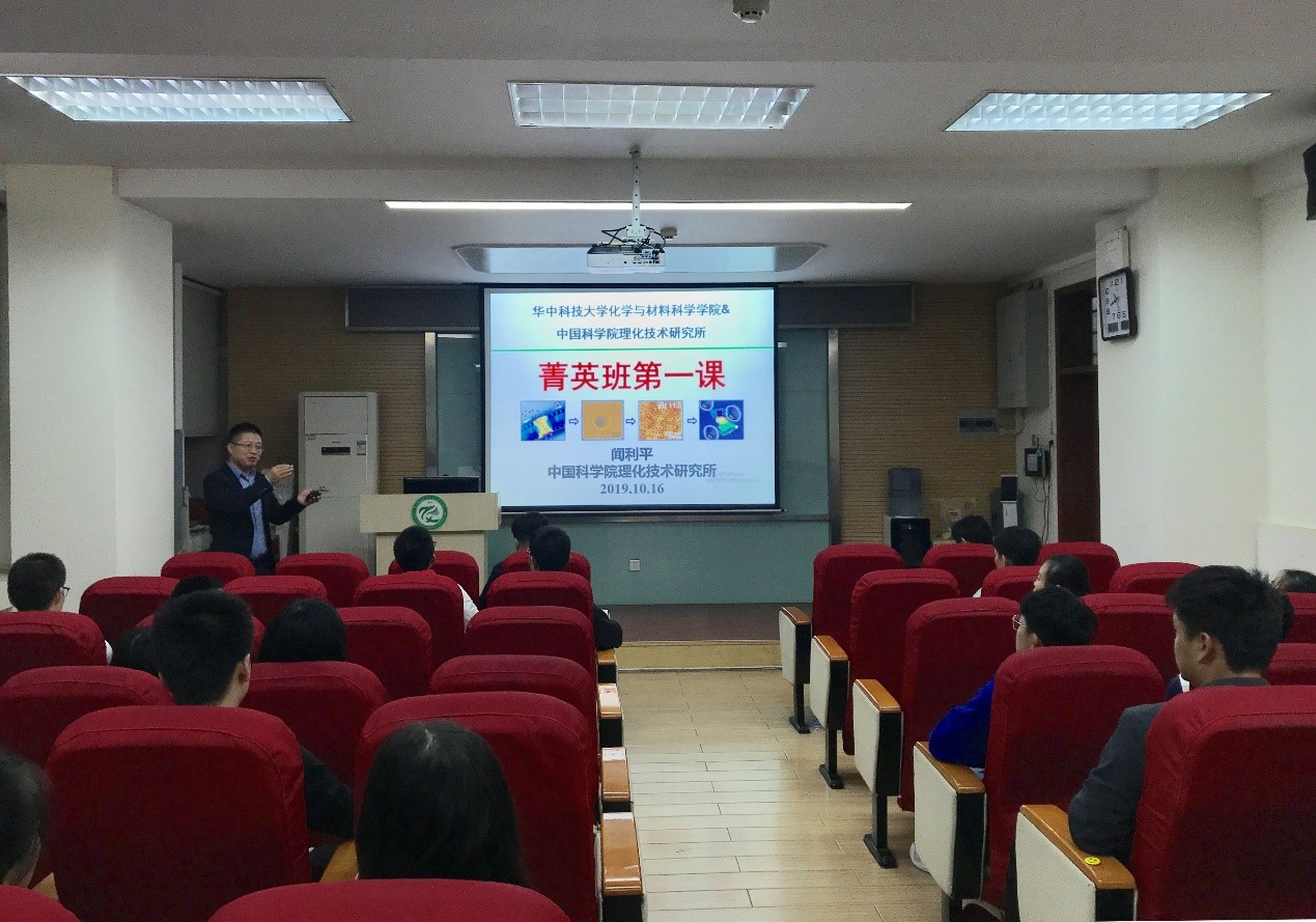 (通讯员:刘赵昊旻)10月16日晚8:00,在2019级化学菁英班面试选拔结束后,中国科公司理化技术研究所研究员、杰出青年基金获得者、2018级化学菁英班班主任张铁锐,理化所研究员、杰出青年基金获得者、2019级菁英班班主任闻利平做客公司开展主题讲座暨思政课教育。公司党委书记李涛、党委副书记吴疆鄂、副经理龚跃法与2017、2018、2019级化学菁英班的同学们共同聆听了报告。闻利平研究员为化学菁英班的同学们讲授“菁英班第一课”,在新的学年引导同学们拓宽学习视域,激发科研动力。张铁锐研究员为大家上主题为“为中华之崛起而读书”的思政课,勉励大家尽早树立远大目标,走好科研报国的每一步。