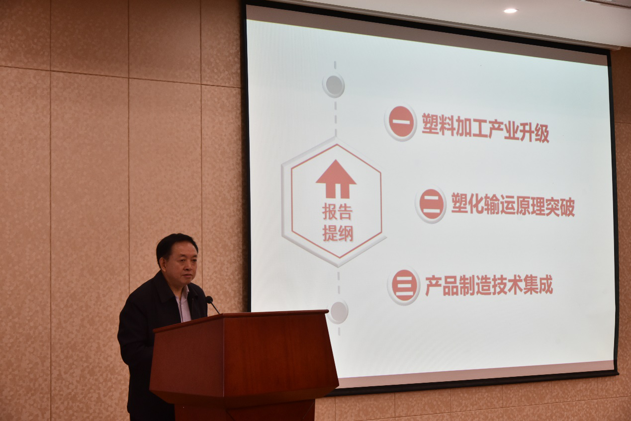 授聘仪式结束后,瞿金平院士为公司师生带来了主题为“高分子先进制造与再制造技术进展”的学术报告。瞿院士从塑料加工产业升级、塑化输运原理突破、产品制造技术集成三方面展开,深入浅出地阐述了高分子产品智能化制造是如何实现高分子产品低耗、高效、高质量的绿色制造,从而促进我国新能源、国防军工、交通运输、石油化工等领域的技术进步,为我国经济社会可持续发展做出贡献。