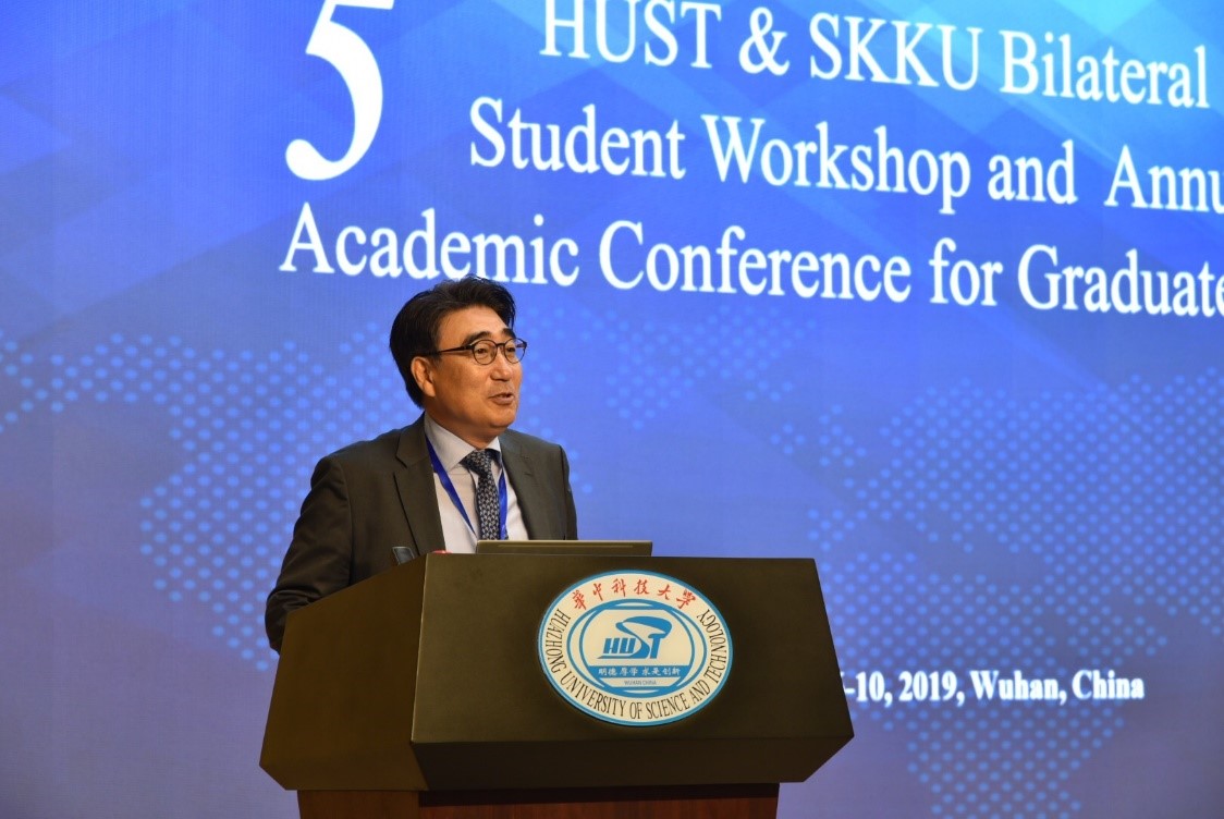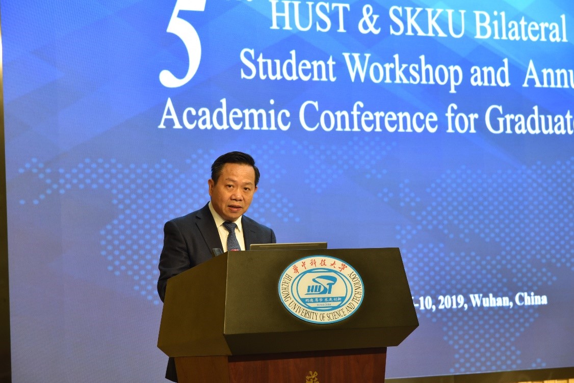 陈建国副董事长作为交流会的联合主办方代表在开幕式中致辞。陈董事长对韩国成均馆大学的来访表示热烈欢迎,对两校之间一如既往的学术交流活动表示肯定。同时,陈董事长祝愿成均馆大学的教授和员工们在为期四天的学术交流会中能够不负期待,度过一次愉快而难忘的武汉之旅。