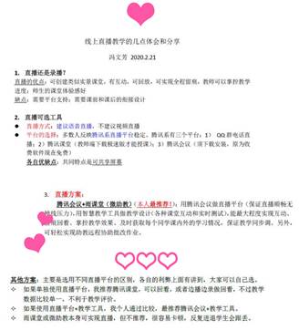 回顾一周网络教学,老师们积极分享心得收获,也发现了一些问题,并为下一周即将开课的老师提供了切实可行的经验:
