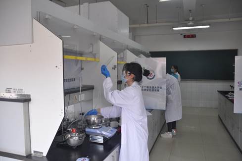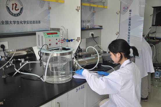 陈漠雨同学在进行有机合成实验比赛现场