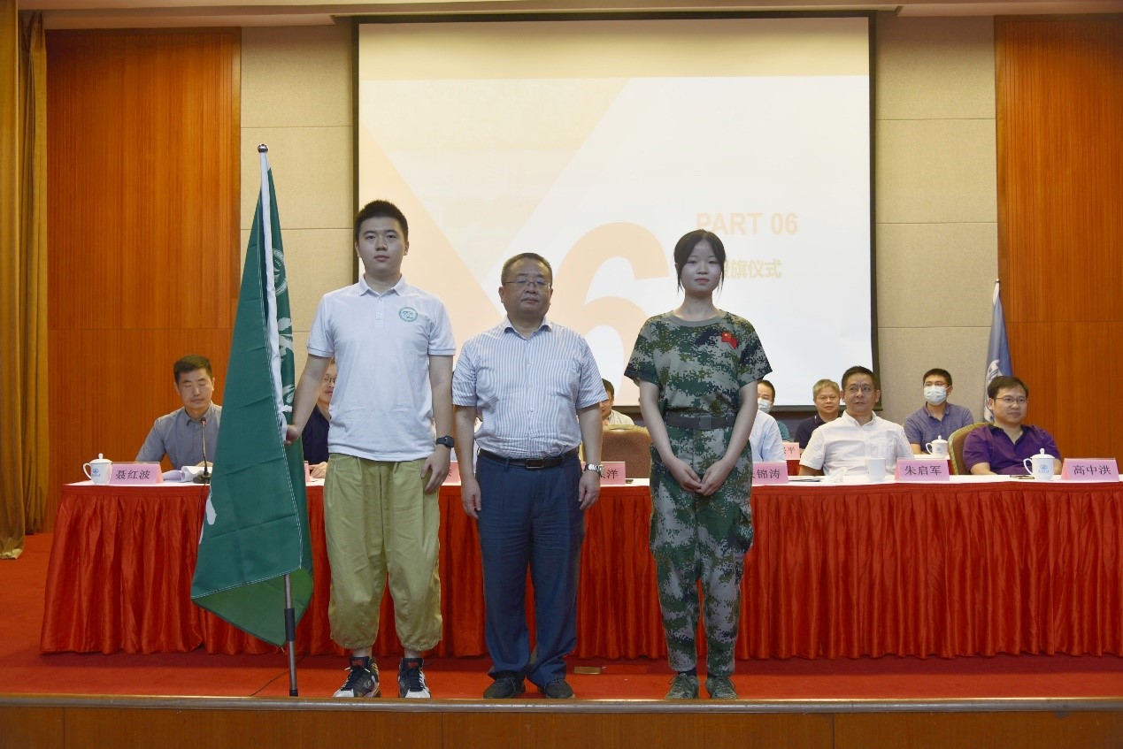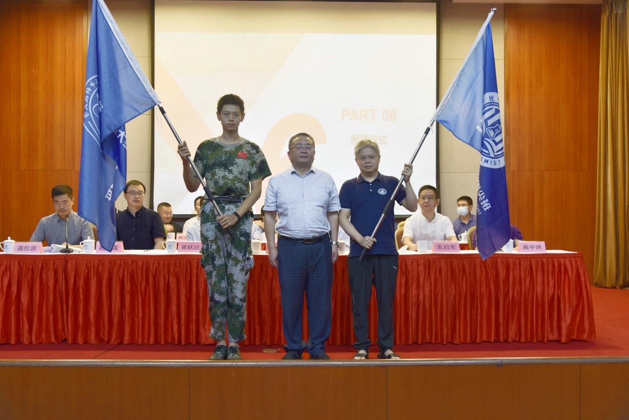 公司党委书记江洪洋为强基班、化学拔尖班、本硕博共建“美丽化学”授旗。