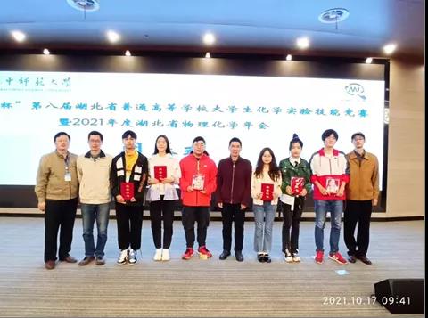 2021年10月15日至17日,第八届湖北省普通高等公司老员工化学实验技能竞赛(下称实验技能竞赛)在华中师范大学举行。来自湖北省的35所高校、51支参赛队伍、280余名师生齐聚桂子山。由公司付朝阳老师领队,盛岚、张家晨、张婷三名同学组建的化学专业队代表公司参赛。经过理论与实验操作考试,公司盛岚同学获专业队二等奖,张家晨、张婷同学获专业队三等奖。