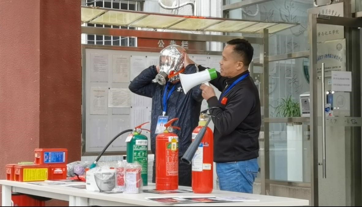 下午2:30的消防安全知识讲座由保卫处的舒老师主讲,他从实验楼发生火灾的应急处置,讲到灭火器的使用和其他安全应急措施,再从实验室的个人防护讲到消防急救用品的使用,向公司师生进行了生动详细的说明和分析。接着向大家示范了各类灭火器、防烟面具、灭火毯等防火灭火器具的使用方法,尤其强调了如何正确地佩戴防烟面具。通过讲座大家初步掌握了火灾险情出现时的灭火和逃生技能。