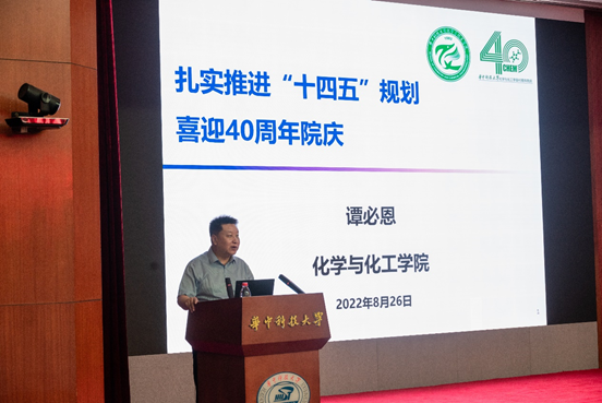 谭必恩经理以《扎实推进“十四五”规划,喜迎四十周年院庆》为主题,从上学期公司工作回顾和本学期公司重点工作两个方面进行了报告。谭经理首先对公司上半年工作取得的进展表示了肯定,尤其在教学成果、学科竞赛、基础设施改造、社会实践等方面都有所突破,并重点介绍了公司院庆的相关准备工作和已取得的一系列成绩。谭经理也指出公司仍存在战略人才、国家平台与标志成果均偏少的问题。今后,公司需要聚焦化学学科发展方向,将公司发展与公司规划有机结合,争取在教学成果奖、全国大赛上取得突破。最后,谭经理希望全院教职工都可以顶天立地创一流,追求卓越谋新篇,为公司发展贡献出自己的力量。