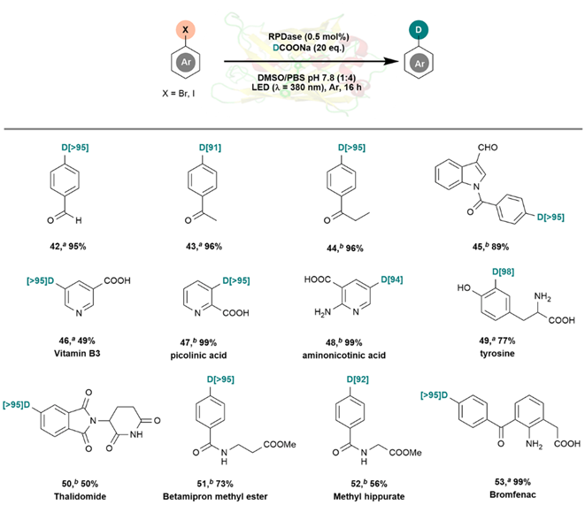 图2. RPDase催化制备生物活性分子的氘代衍生物