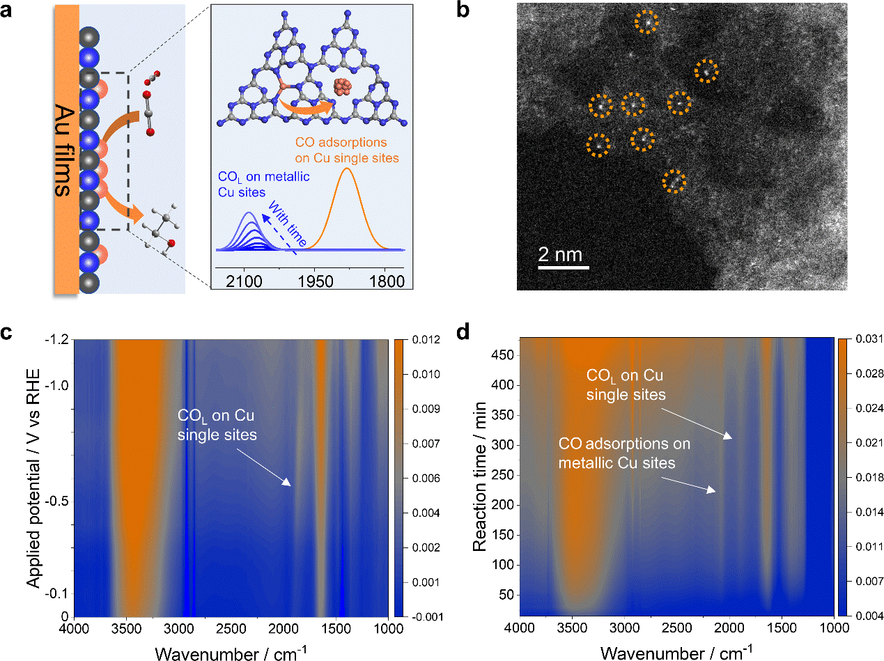 图1. 基于原位表面增强红外吸收光谱技术定量分析铜单原子催化剂的结构演变