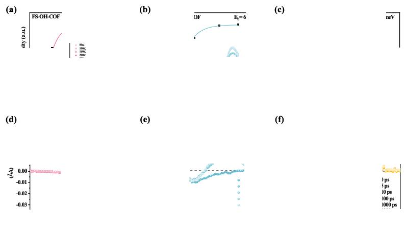 图2(a-c)COFs的变温荧光光谱和相应的拟合曲线,以及其瞬态吸收光谱(d-f)。