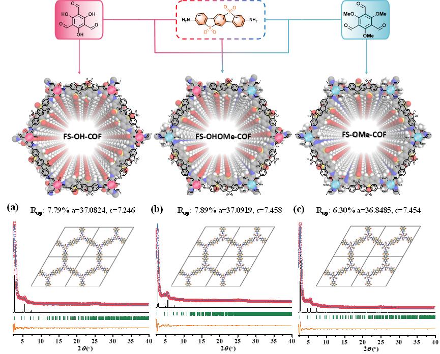图1 COFs的合成以及粉末X射线衍射的实验和模拟图。
