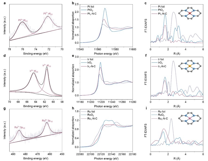 图2. Pt1–N–C, Ir1–N–C, 和Ru1–N–C催化剂电子结构表征