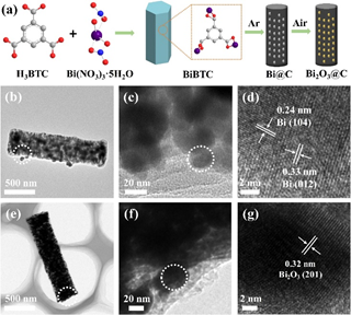 基于此,伟德国际VICTOR1946夏宝玉教授课题组在强化Bi基催化剂中的Bi-O键晶体结构研究基础上(ACS Catalysis 2020, 10, 743-750),设计制备一种新型的碳纳米棒封装氧化铋催化剂。该催化剂可以有效地将CO2电催化还原为甲酸 (Angew. Chem.Int.Ed.2020.DOI:10.1002/anie.202000657)。实验结果表明,Bi2O3@C中的协同作用促进了CO2的快速选择性还原,其中Bi2O3有助于改善反应动力学和甲酸选择性,而碳基质则有助于提高甲酸生产的活性和电流密度。在催化CO2还原为甲酸的过程中,该合成的催化剂的起始电位低至‐0.28 V vs. RHE,部分电流密度超过200 mA cm‐2,生成甲酸的法拉第效率高达93%,而且表现出优异的稳定性。该工作为高效甲酸生产提供了一种基于铋的MOF基衍生催化剂,并且有助于推动电催化CO2转化技术的进一步发展。