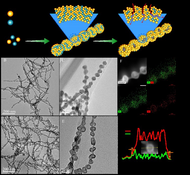 图1. 铂镍合金结构、形貌和制备示意图