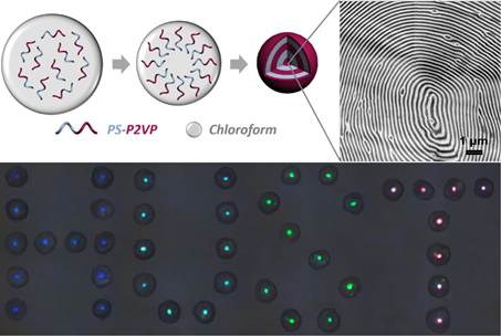 42日,《先进材料》在线刊发了题为“Responsive Block Copolymer Photonic Microspheres (Adv. Mater. 2018, DOI: 10.1002/adma.201707344)的研究成果。公司为第一完成单位,论文第一作者是伟德国际VICTOR1946博士生杨一,朱锦涛教授为论文通讯作者。光子晶体是具有周期性有序结构的光学材料,由于结构多样性和可设计性使其在显示、编码载体、传感和光纤等方面有重要应用。该团队针对目前人工光子晶体制备方法复杂,形式单一、光学信号的角度依赖等问题,设计了一种基于嵌段共聚物的响应性光子晶体微球。通过微流控技术与嵌段聚合物空间受限组装相结合的方法,构建了具有类似洋葱状的同心层有序结构;独特的三维对称结构使其在溶液pH值和有机溶剂响应时具有良好的单色性和光学信号角度独立性,可用于溶液性质的裸眼检测和传感等领域。该研究不仅提出了一种新的有序结构光学材料构筑方法,还为设计周期性结构提供了一种新的模板。