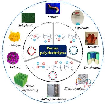 此次应邀为《德国应用化学》撰写的论文以上述工作为主要基础,论述了多孔聚电解质领域的最新进展,包括材料制备新方法以及在能源转化、水处理、分子分离、化学催化、传感响应和组织工程等领域的应用。分析了多孔聚电解质材料化学的难点,展望了未来发展方向和前景。