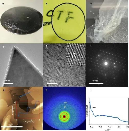 图2 共价三嗪框架薄膜的光学照片及微观形貌表征
