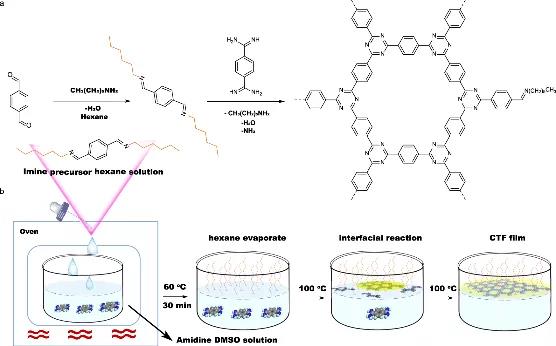 图1:脂肪胺介导的共价三嗪框架薄膜制备策略示意图