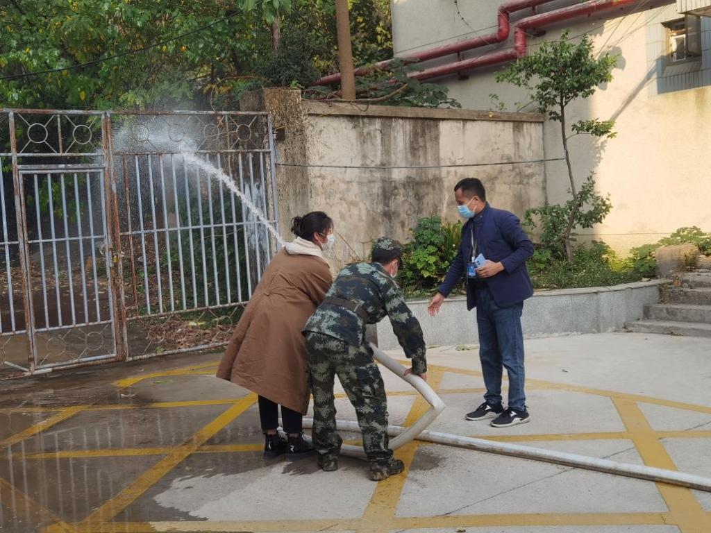 随后进行的集中灭火演练环节中,舒科长向全体师生演示了灭火器的规范使用方法和注意事项。随后,消防官兵点燃演练使用的汽油桶,让师生们参与灭火器使用实操演练,40余名师生轮番利用灭火器等对油桶中的明火实施了扑灭,掌握了如何应对初期火灾扑救。最后大家学习了室外消防栓、消防水带的灭火操作,针对实验室/楼内外稍大火灾的扑灭做到冷静应对。