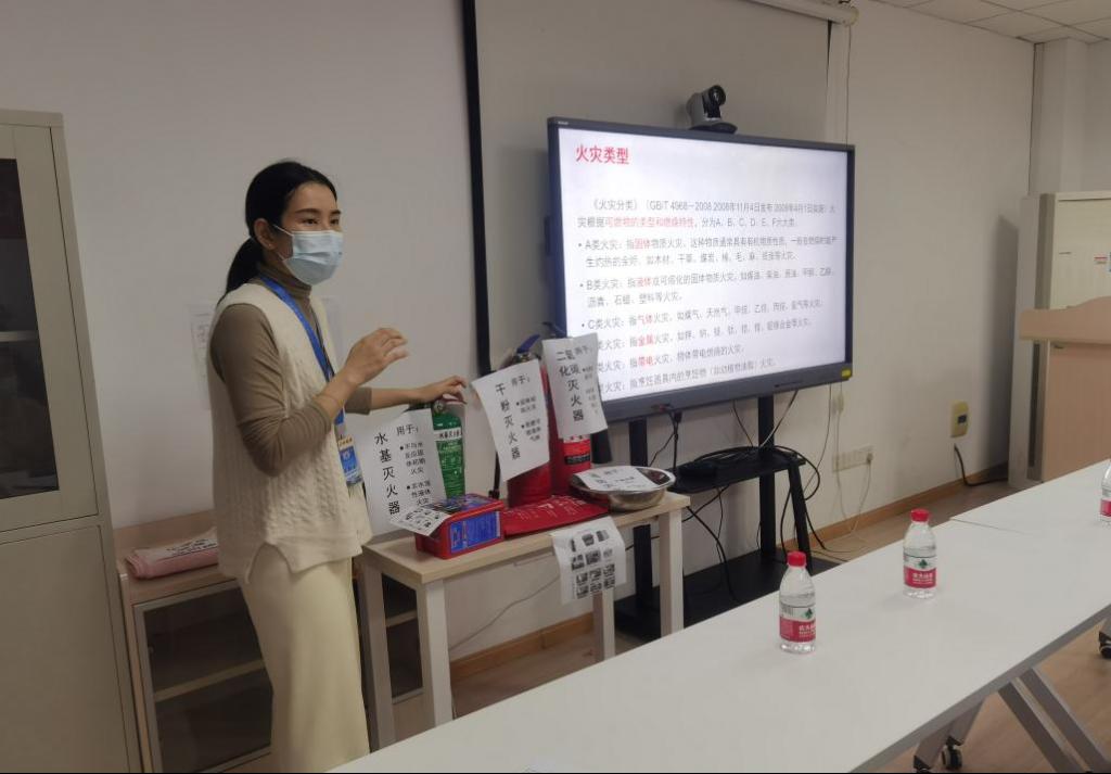 消防安全知识培训由保卫处陈嘉璇科长主讲。通过开心麻花《灭真火真灭火》的短视频,陈科长为大家讲述了火灾的可怕性以及不会使用灭火器的危害性。接着通过国家消防部的火灾案例,陈科长从宿舍、办公室、实验室的用电安全、消防安全应急措施等方面,就火灾安全隐患、消防安全责任等方面向公司师生进行了详细说明和分析。陈科长一边讲述还一边向大家展示了各类火灾对应的各种灭火器的使用方法,同学们听得津津有味。通过讲座的培训,大家初步掌握了火灾险情出现时的灭火和逃生基本技能。