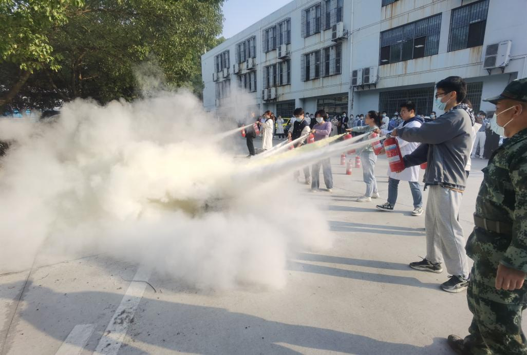 消防疏散演练和灭火实操前,朱启军副经理跟大家强调火灾的危害性,希望大家能有深刻的认识,并切实提高防火防灾的技能。下午3:10随着警报的响起,消防广播的疏散开始播报,消防疏散演练正式拉开了序幕。韵苑28栋实验楼内的全体师生近三百余人,在疏散引导组的引导下快速、有序的,仅用了4分钟时间从实验楼区域疏散到安全空地。