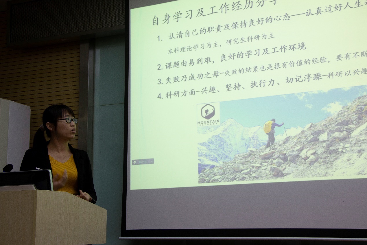杨雅碧以自己的课题为例,向大家展示了自己在硕士期间的科研成果,同时结合自己的论文发表经历,向大家展示了一篇发表的论文需要如何设计,执行,分析,撰写。
