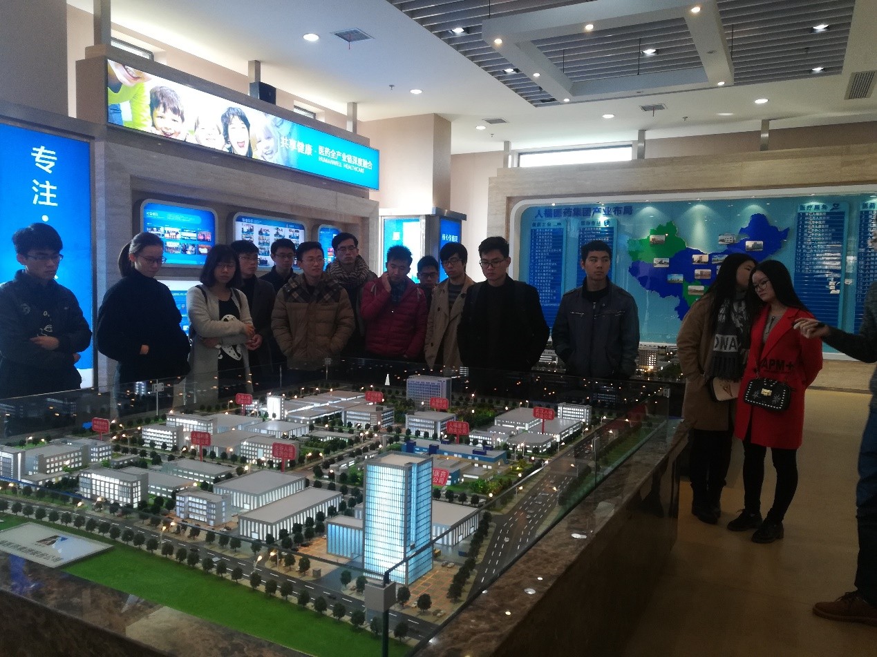 大家首先来到了此行的第一站--人福医药集团股份有限公司总部。一名公司员工向我们详尽的介绍了人福医药集团股份有限公司的发展历史,战略目标,产业布局和突出的企业文化。作为湖北省第一家上市的民营高科技企业,也是武汉东湖新技术开发区第一家上市公司,人福医药已成为综合性的医药产业集团,下辖10多家医药生产企业和多家医药商业企业是湖北省内生产能力最强、剂型最全、品种最多、资源最雄厚的医药企业。 在这半个小时的解说中,我们感受到了一个完整,立体,有活力的人福,学长的解说像是一把钥匙,打开了我们对人福求知的大门。