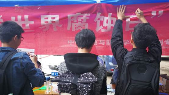 本次活动分为3个部分,第一个部分是工作人员向过往师生分发世界腐蚀日宣传册,介绍世界腐蚀日相关内容。