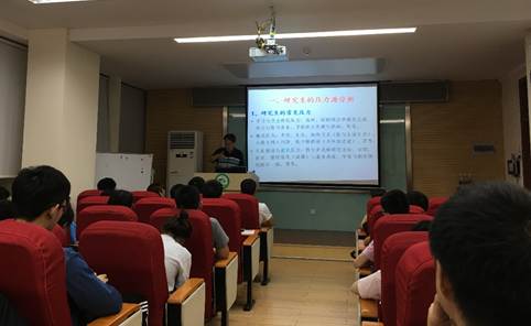 雷五明老师作了题为“沟通 从心开始——兼谈研究生的压力与情绪管理”的精彩演讲,由浅入深,精彩剖析,同时引入了大量生活中的实例,生动形象,不乏乐趣,期间雷老师妙语连珠,多次被热烈的掌声打断。