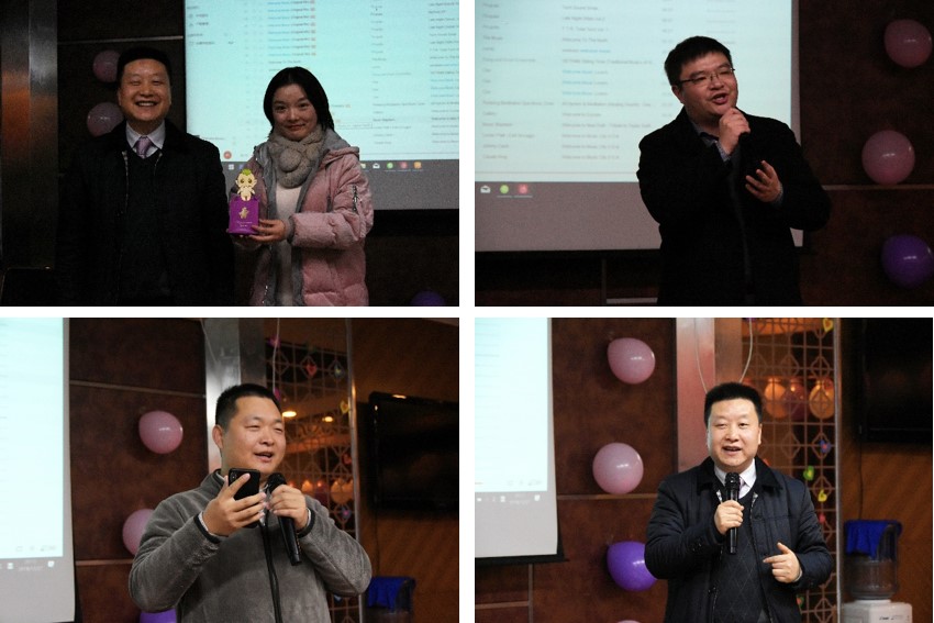 在游戏环节,各位老师都积极参与,并乐在其中。国际教育公司的张可老师在抢凳子游戏中斩获头奖。击鼓传花游戏,为老师与职工们创造了同台竞技的机会。不管是夏宝玉老师的清唱歌曲《小草》,黄超老师深情演唱的《月亮代表我的心》,还是谭必恩老师的即兴演讲,都让在场的所有人为之惊叹。职工们的即兴表演也是花样百出,有款款深情的朗诵,也有别具一格的舞蹈,虽然风格、形式各异,但是都透露出欢乐的心情,寄予了美好的希望。
