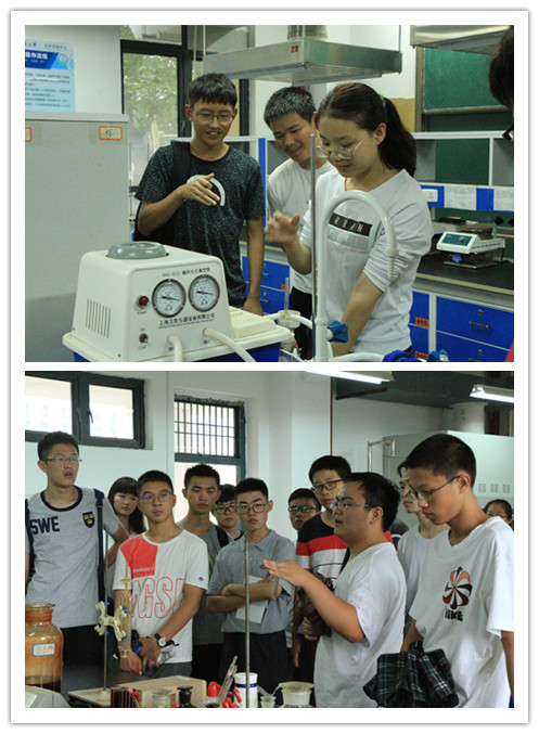 实验中心的老师热情地接待了同学们。在化学楼附一楼的无机化学实验室,老师细致地为新生们介绍实验室地基本概况、主要用途、注意事项等方面的问题。从同学们在高中实验中就已熟知的试管、烧杯到对多数同学仍属陌生的抽滤装置的使用,老师都亲自演示并加以讲解。