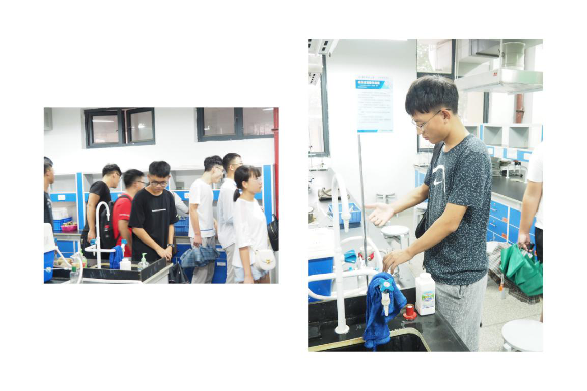 结束了分析化学实验室的参观后,同学们来到了物理化学实验室。在这里,大家了解到了凝固点降低法测相对分子质量、电动势法测定化学反应的热力学函数变值等实验的基本操作流程和实验原理。行程最后,同学们来到了附七楼的有机化学实验室。由于有机物大多具备一定毒性,老师着重强调了实验室安全守则:严禁打闹、有毒物品的操作应该在通风橱内完成等,还为大家示范了洗眼器的用法。