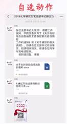 吉林大学2017级博士研究生扈殿文同学,为我们带来研究生党支部工作的分享经验。他作为物化北区研究生党支部书记,疫情期间仍不忘职责,时刻发挥着一名党员的带头模范作用,积极做好自己的本职工作,在开展公司规定的“三会一课”外,还通过线上平台等方式进行交纳党费、捐款等活动。最后,扈同学以“习近平总书记给北京大学全体援鄂医疗队90后全体党员的回信”作为结语,青年一代有理想,有本领,有担当,国家就有前途,民族就有希望!