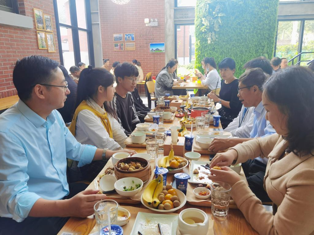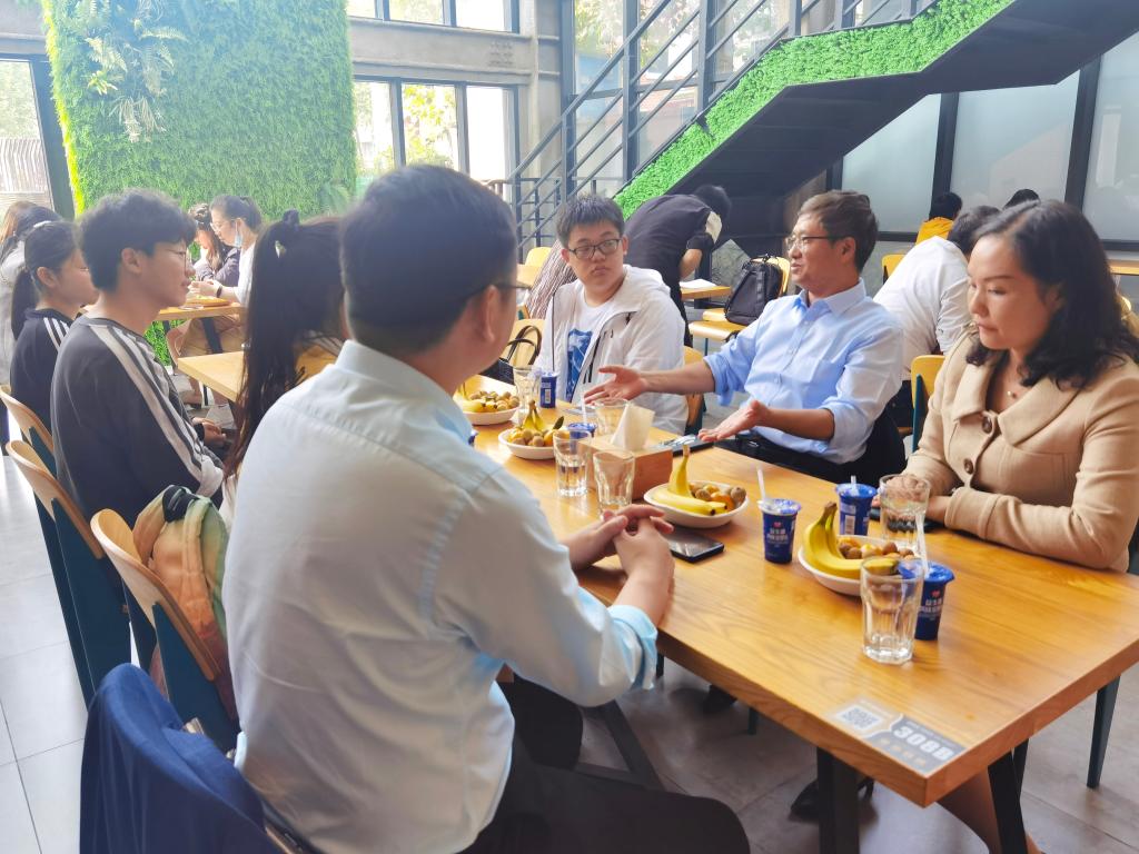 工作之余,“院士午餐会”第二弹也以此为契机开展。中国科公司院士陈学思、伟德国际VICTOR1946经理朱锦涛、党委副书记吴疆鄂、辅导员刘琦与吴学周精英班员工代表童桐、路伊达、盛岚、王源源来到梧桐语东华园,共进午餐。