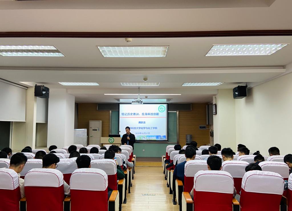 (通讯员:刘秋璇,刘赵昊旻)11月17日晚上七点,化学楼一号会议室内,伟德国际VICTOR1946副经理、2020级强基班班主任龚跃法教授为化院2018级、2019级、2020级拔尖班、2020级强基班的同学们带来了一堂以“铭记历史教训,投身科技创新”为主题的思政课。公司党委副书记吴疆鄂,辅导员张帆、刘赵昊旻也来到了课堂,与同学们共同聆听。
