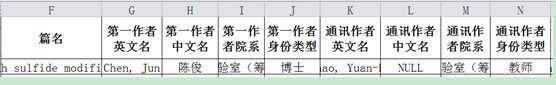 校科协按第一作者所在单位,通讯作者所在单位,参与作者所在单位的顺序将论文分到公司,一篇论文只分到一个院系,各院系间论文不重复。请老师核实、补齐表中作者的相关信息(从G-R列)。