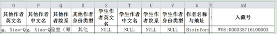 (1)核实、补齐表中关于论文作者信息的相关数据(从G-R列)