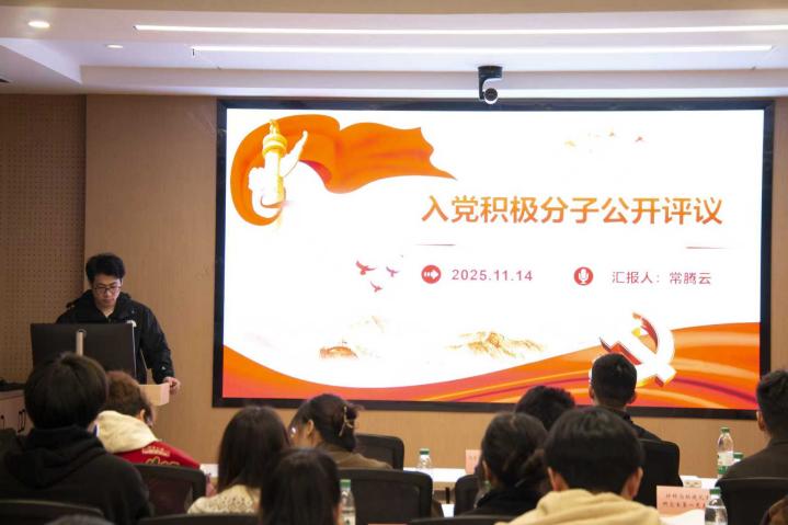 为深入落实新时代党旗领航工程,强化研究生思想政治建设,公司于2025年11月14日晚在化学楼肇隆报告厅成功举办了2025年秋季研究生入党积极分子公开评议活动。本次会议特邀辅导员李亨进行指导,公司党建工作中心负责人吕文博出席,由各支部代表组成评议评委团,公司党建工作中心孙骁奕主持会议。
