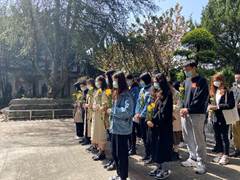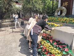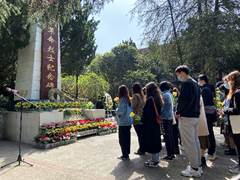 仪式开始,全体队员在墓前整齐列队,庄严肃穆,低头向革命先辈默哀三分钟,沉重悼念为人民献身的烈士们,并在献花台依次敬献手中的鲜花。