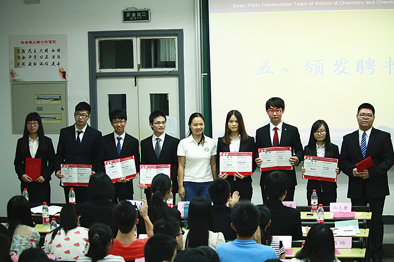 随后,党建工作组主任邵太康作了2014-2015年度工作报告。他对这一年取得的成绩做出了系统的总结陈述,并提出了包括完善党建内部管理制度、加强院系及各组织间合作交流等待改进之处。在此之后,吴疆鄂书记为党建工作组第三届领导小组成员颁发了聘书,对他们这一年来的付出表示了诚挚感谢。